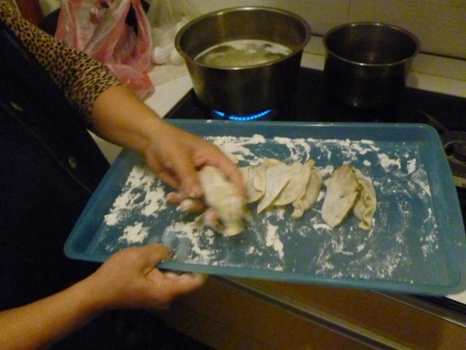 Meat/vegetable mixture going into these beautifully round dumpling/wanton raps. We can by the wraps just down the road! We are soo doing this at our house